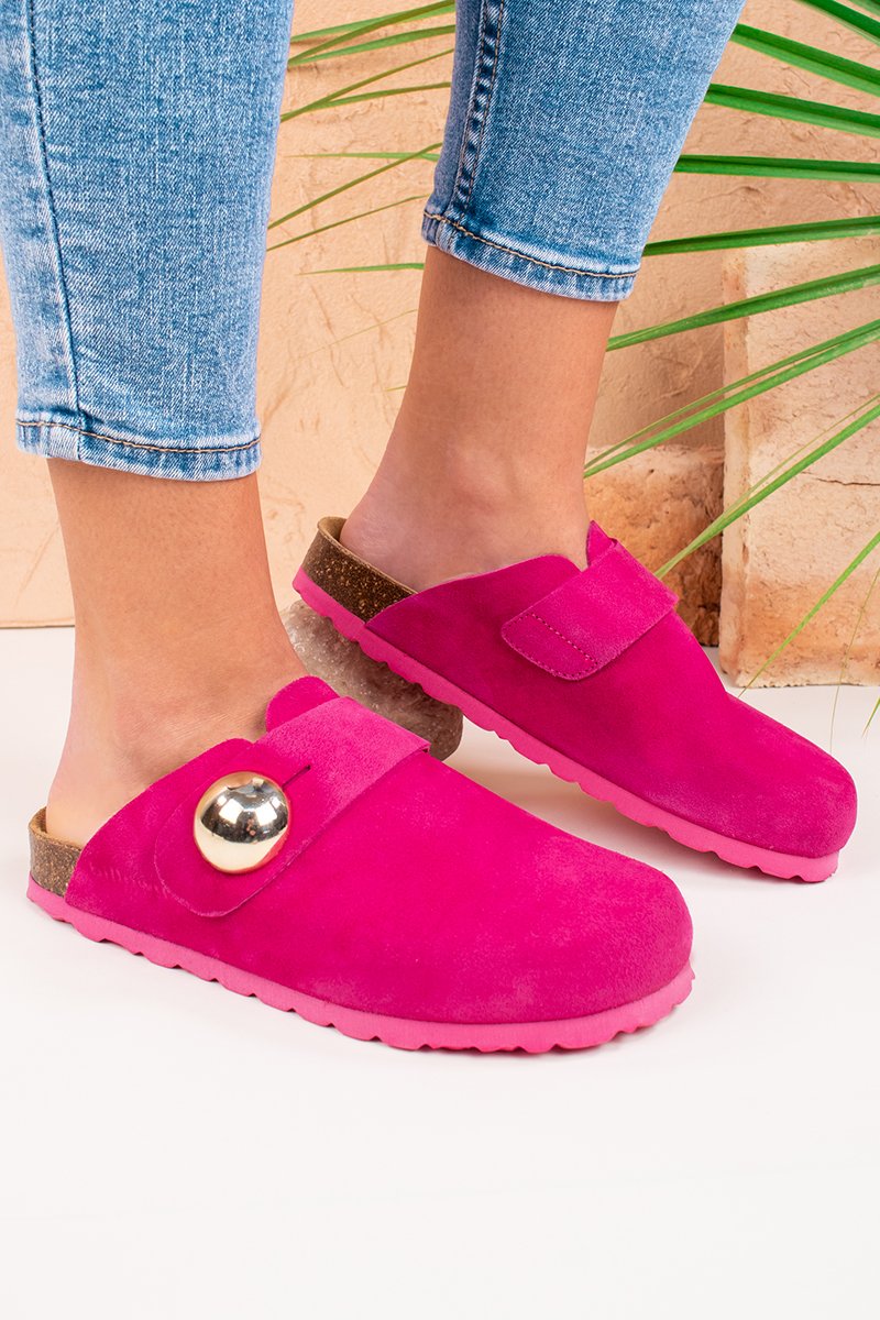Leren Clogs - Fuchsia