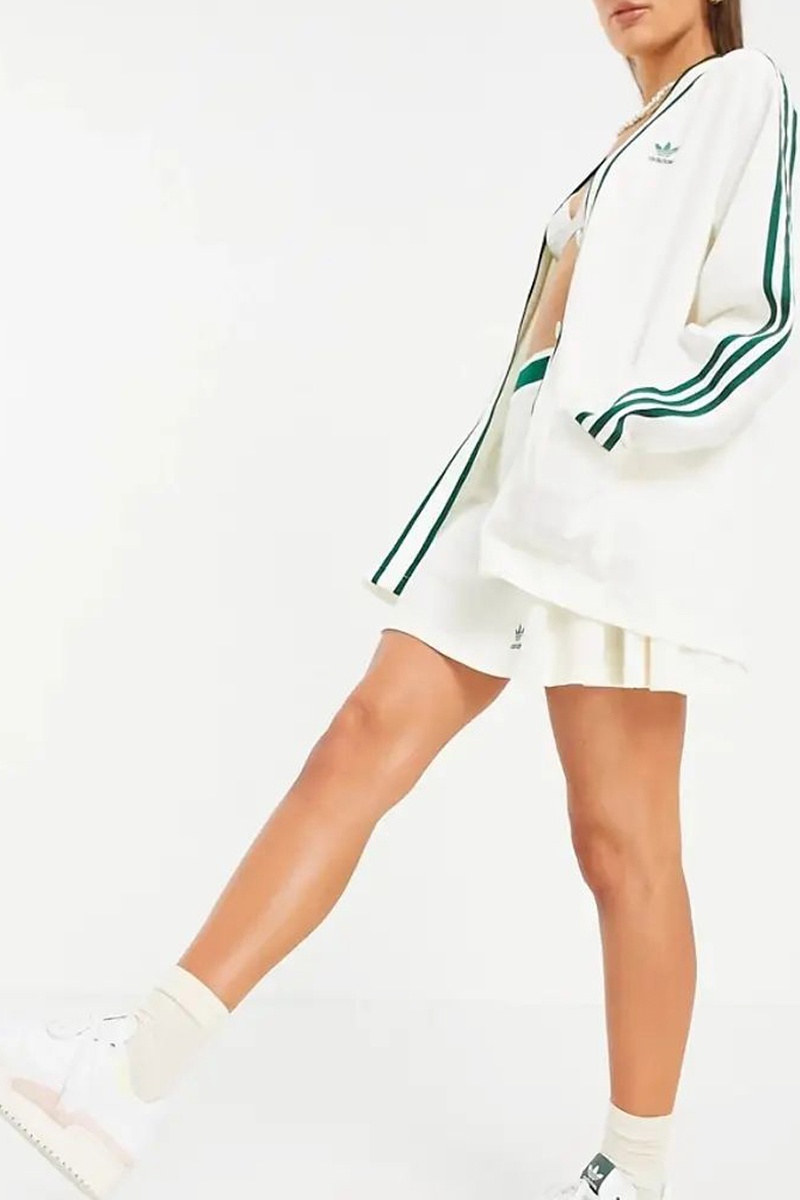 Contrasterende biezen bij de schouders, op de mouwen en aan de voorkant.