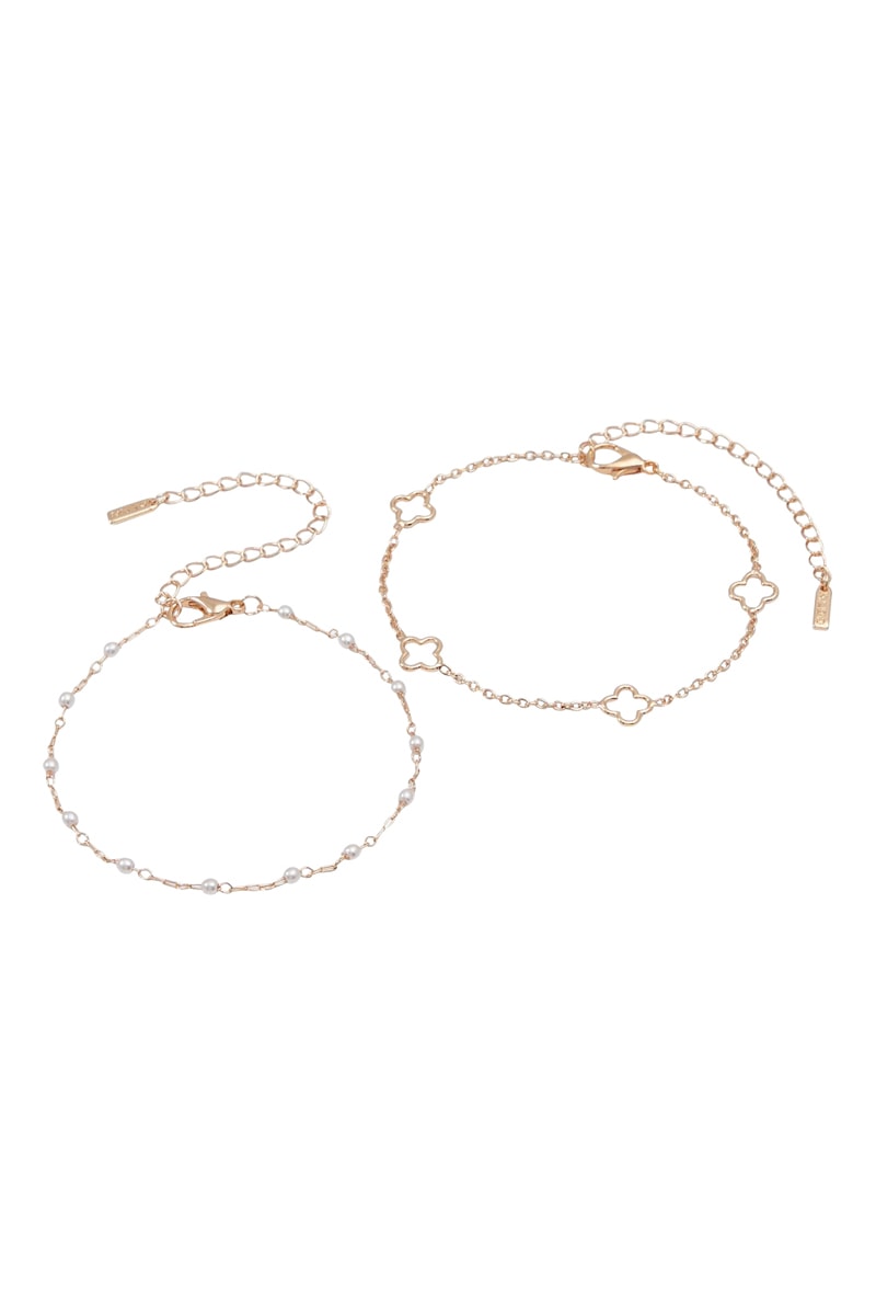 2 Armbanden waarvan 1 ingelegd met kunstparels.