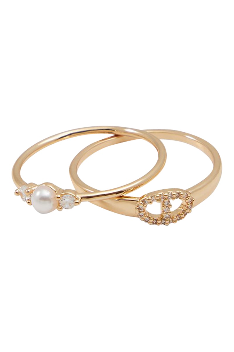 1 ingelegd met zirkonia's en 1 kunstparel.