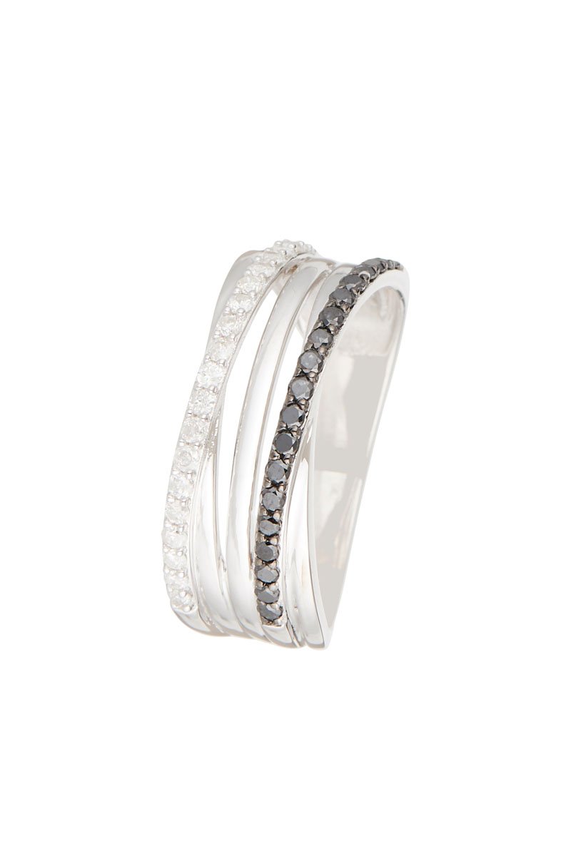 Ring van witgoud ingelegd met 19 diamanten en 19 zwarte diamanten.