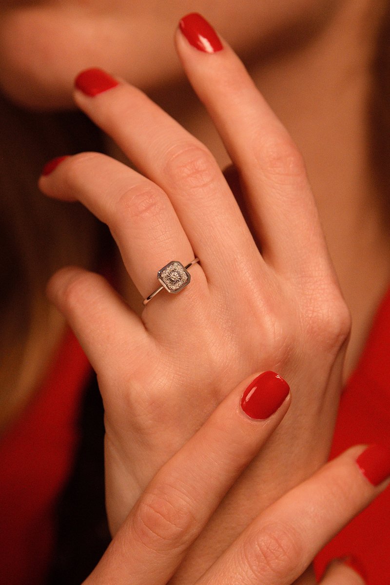 Materiaal: witgoud 375/1000 en diamanten 0,09 karaat/17
