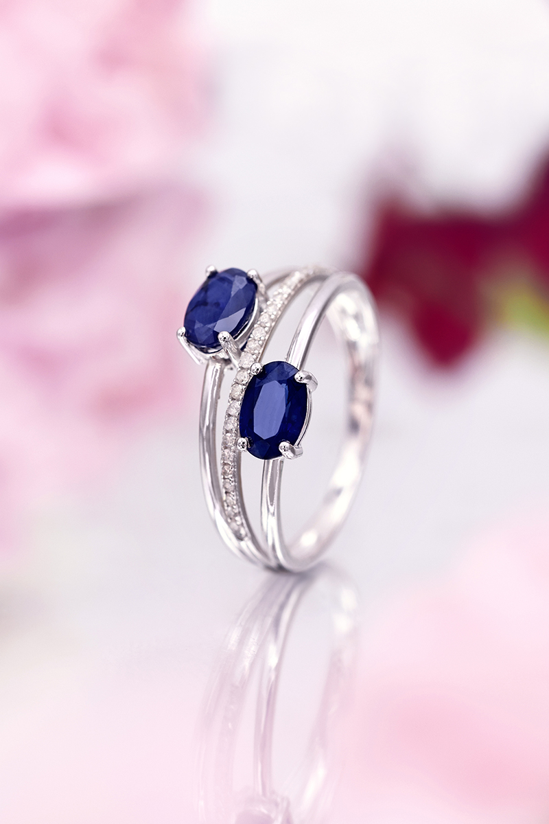 Ring Duo de Saphirs - Witgoud, Saffieren en Diamanten