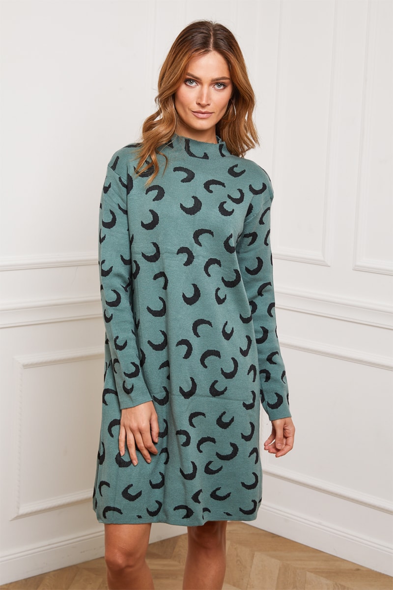 Kasjmier Trui-jurk Gibraltar - Donkergroen en Zwart