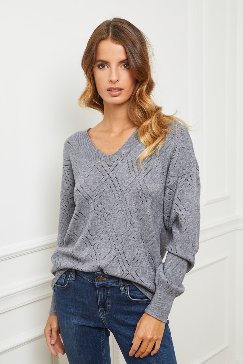 Opengewerkt geweven op de mouwen en aan de voorkant.