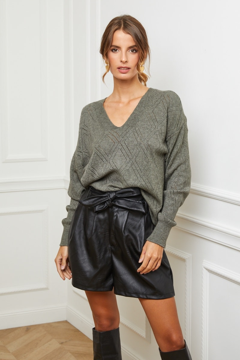Opengewerkt geweven op de mouwen en aan de voorkant.