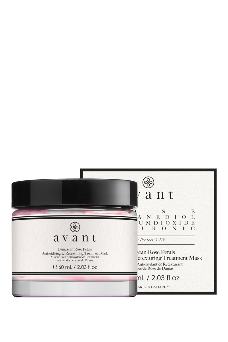 Antioxiderend en texturerend masker met damaskusrozenblaadjes.