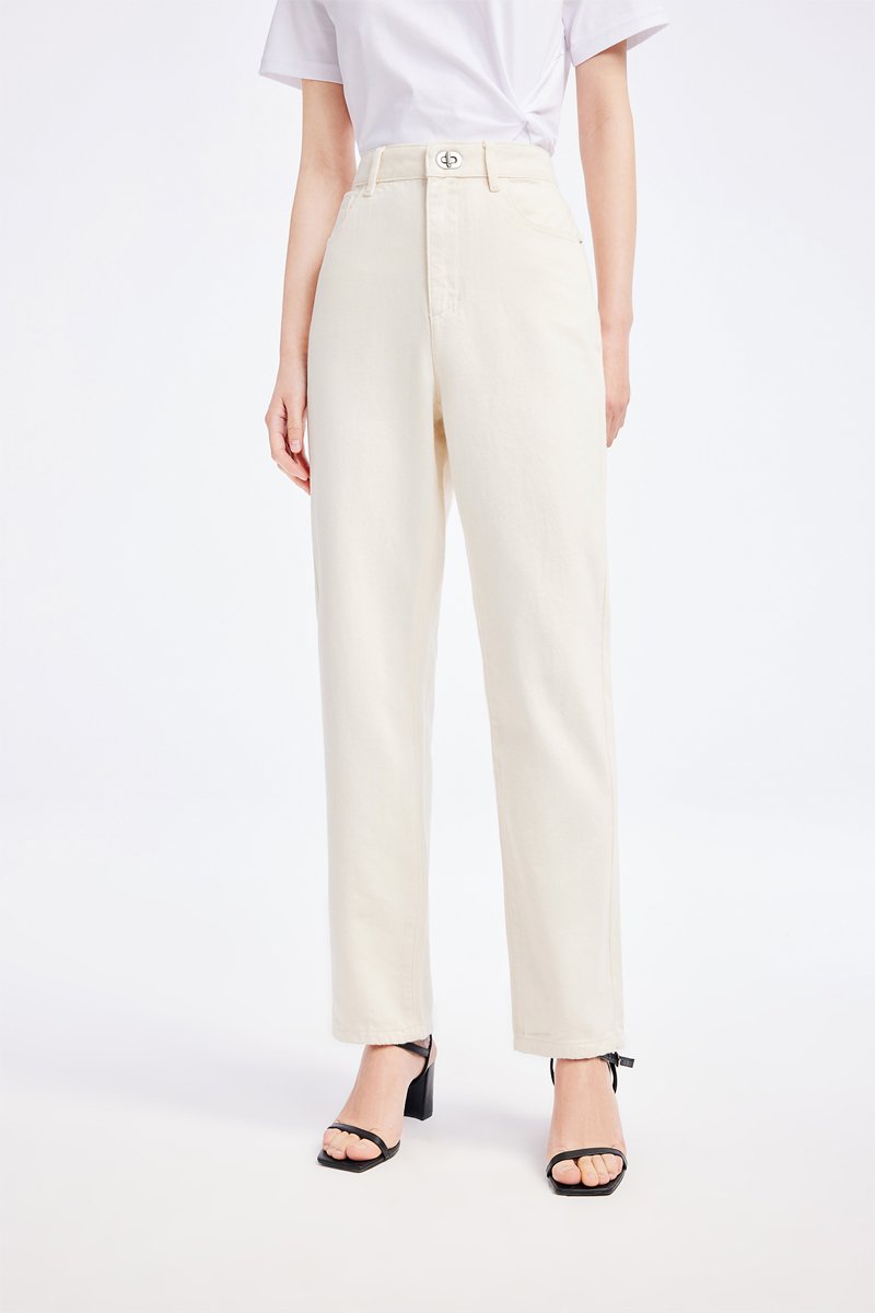 Jeans Hoge Taille Slim Fit - Ecru
