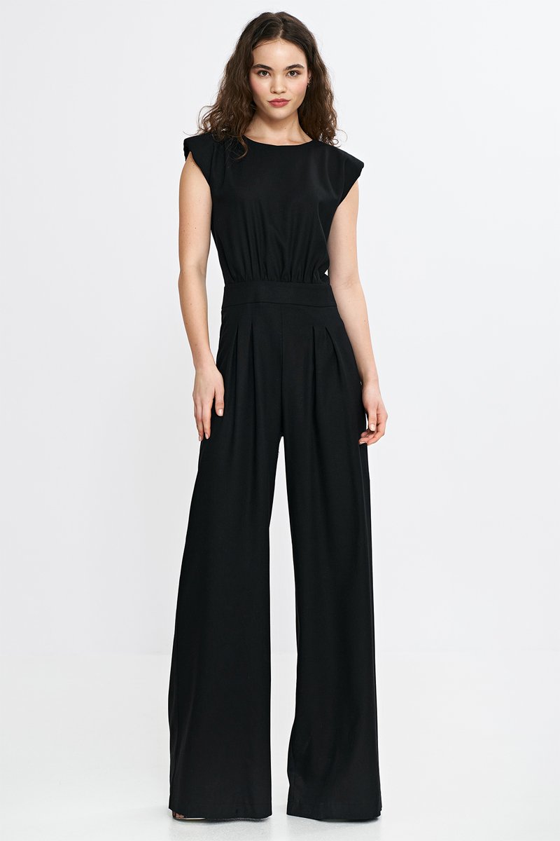 Jumpsuit regular fit van linnenmix met korte mouwen.
