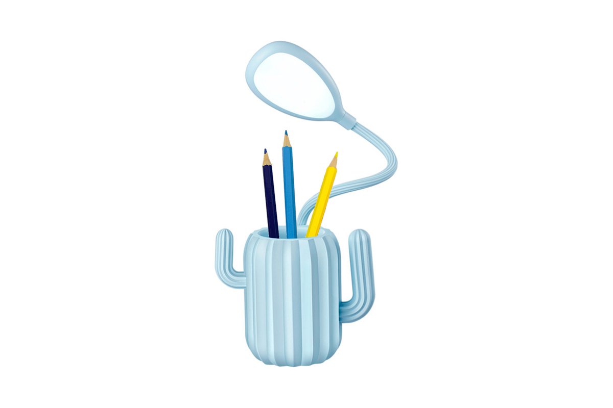 Deze pastelkleurige pot in de vorm van een cactus heeft 3 verlichtingsstanden dankzij de 360° flexibele LED-lamp.