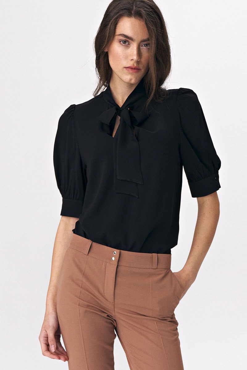 Top met korte pofmouwen.