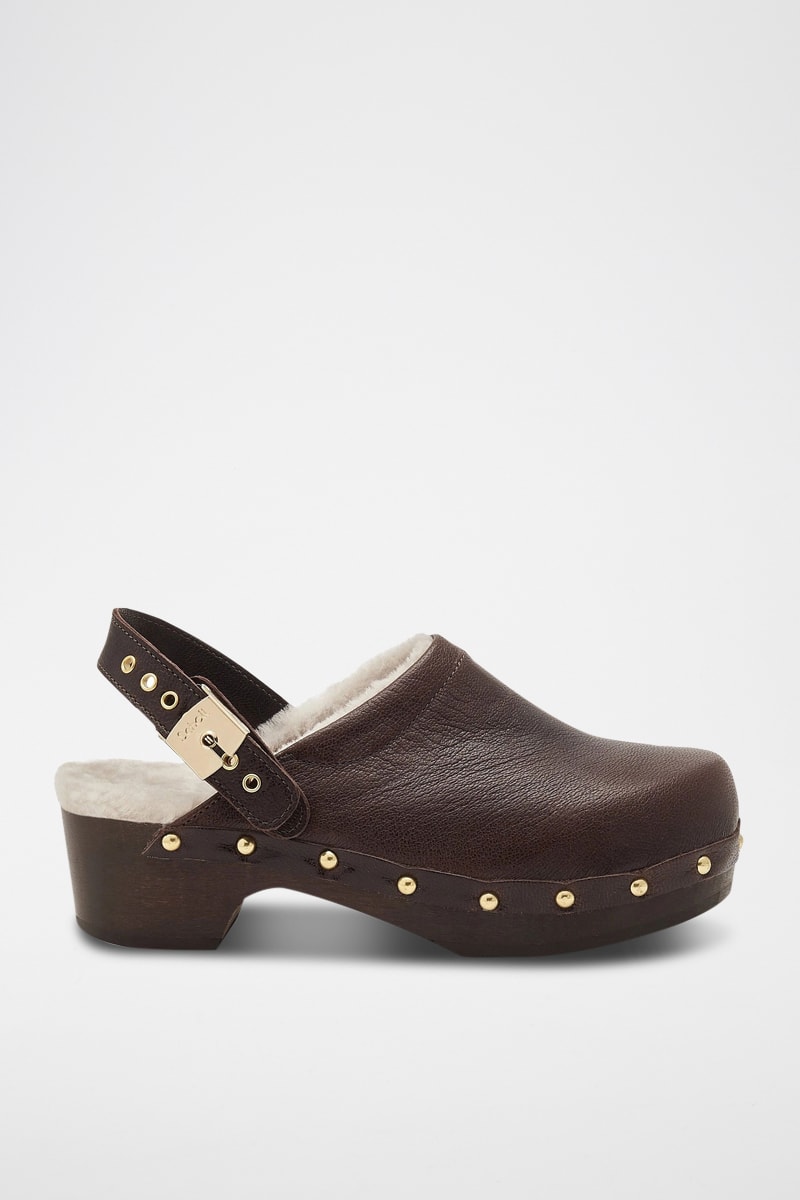Gevoerde Nubuck Clogs met Hak - Bruin