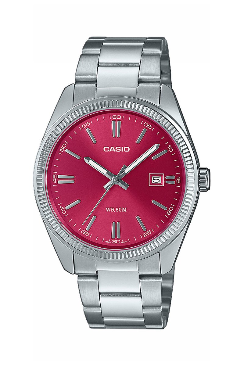 Stalen Quartz Horloge Timeless - Zilverkleurig en Frambozenrood