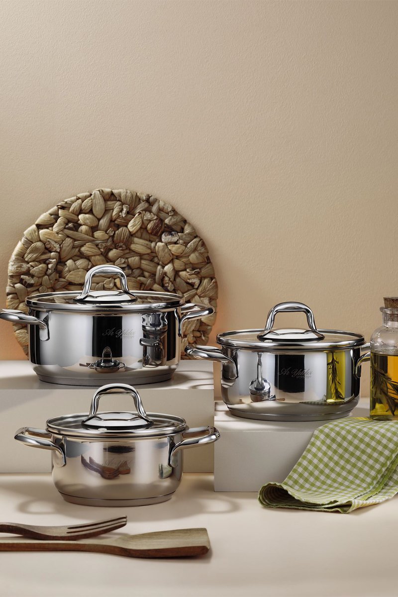 3 Kookpannen met Roestvrijstalen Deksel - 14 / 16 / 18 cm