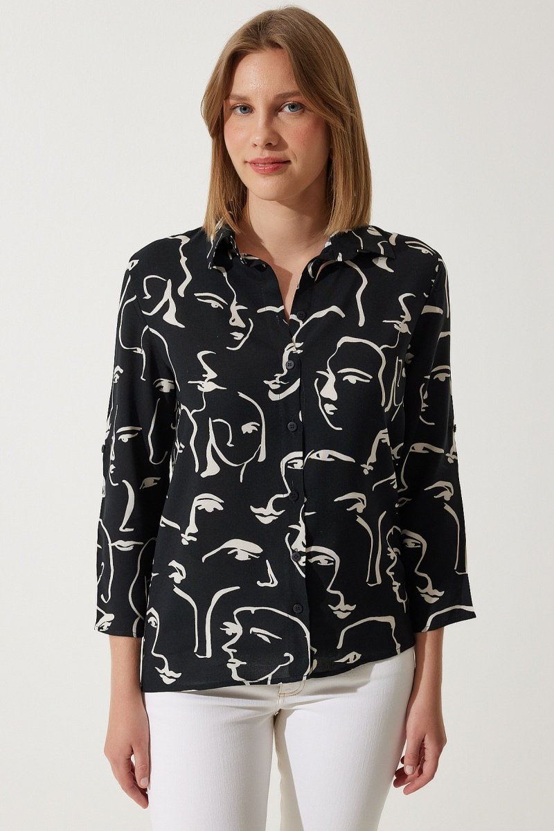 Blouse met oprolbare driekwart mouwen.