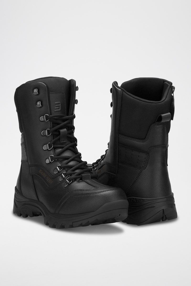 Vetersluiting aan de voorkant en ritssluiting aan de zijkant.
