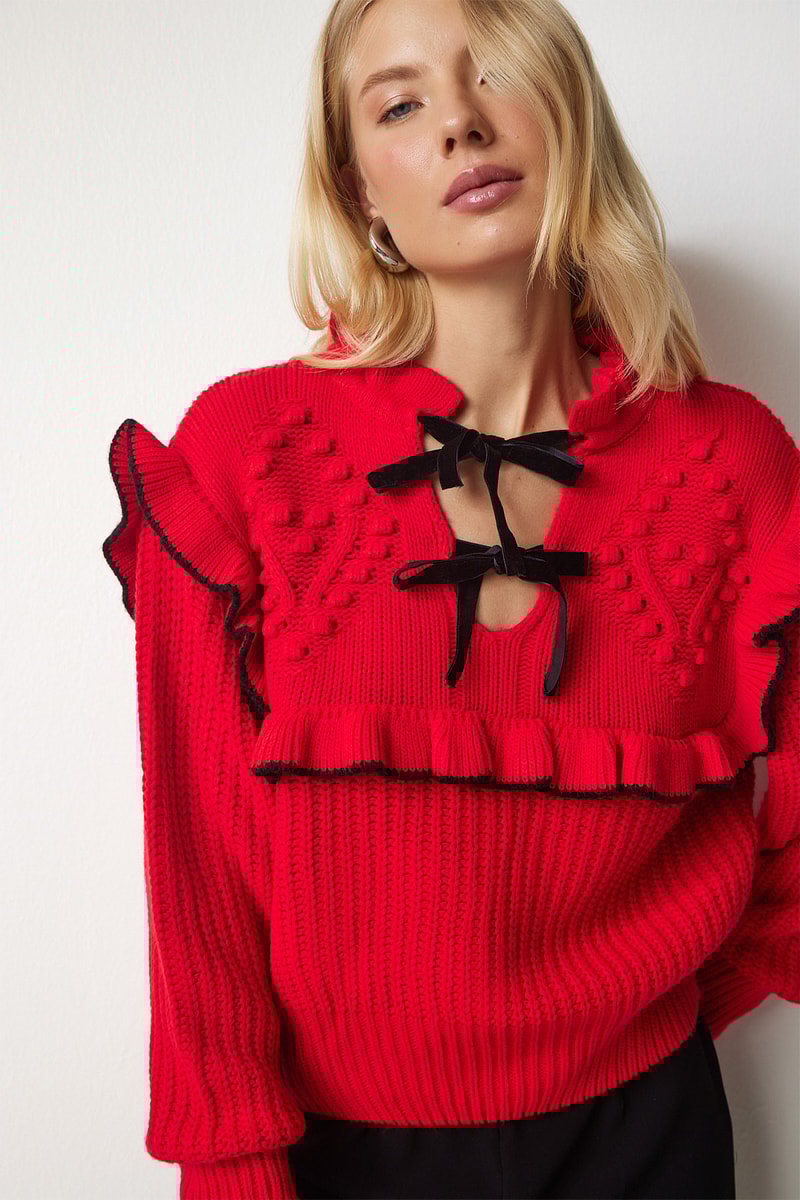 Ruches bij de hals, op de mouwen en aan de voorkant.