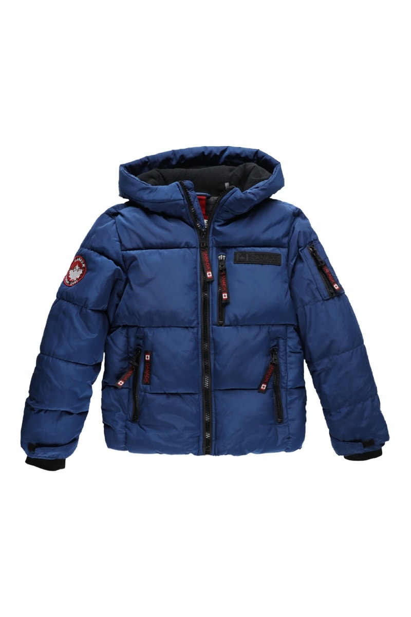 Gewatteerde jas met capuchon en afneembaar imitatiebont.
