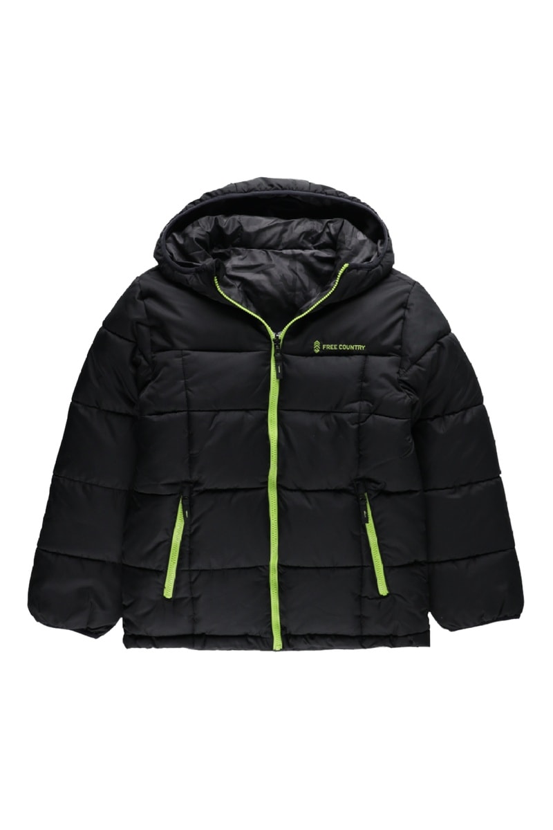 Dubbelzijdige gewatteerde jas met capuchon - Zwart