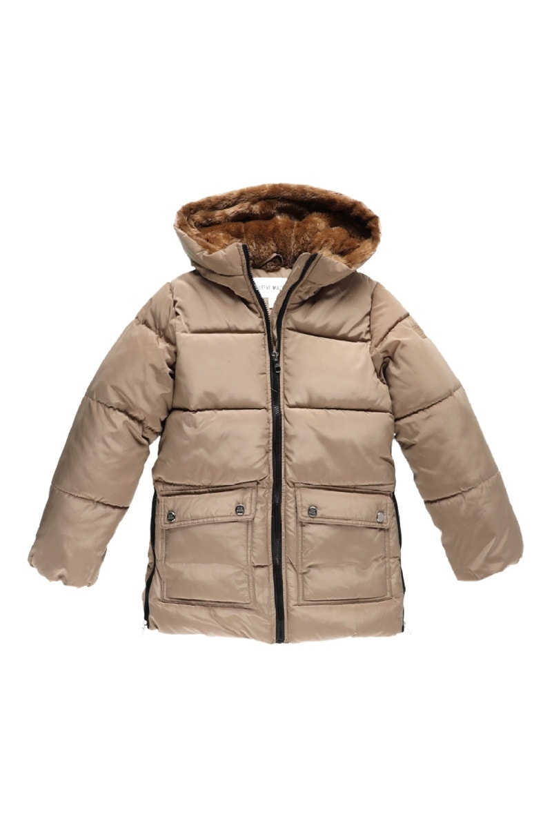 Gewatteerde Jas met Capuchon - Beige