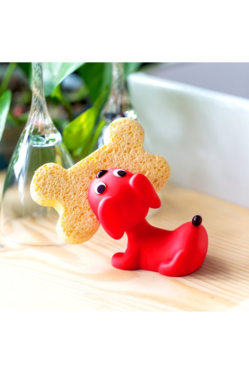 De kop draait, zodat je de spons makkelijk neerlegt.
