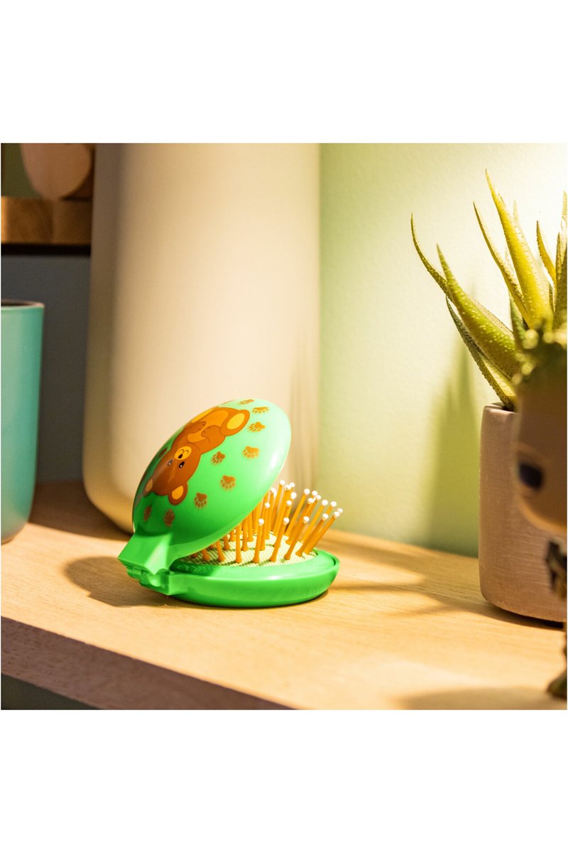 Opvouwbare haarborstel voor op reis Lady Retro Bear Brown- Groen en Bruin