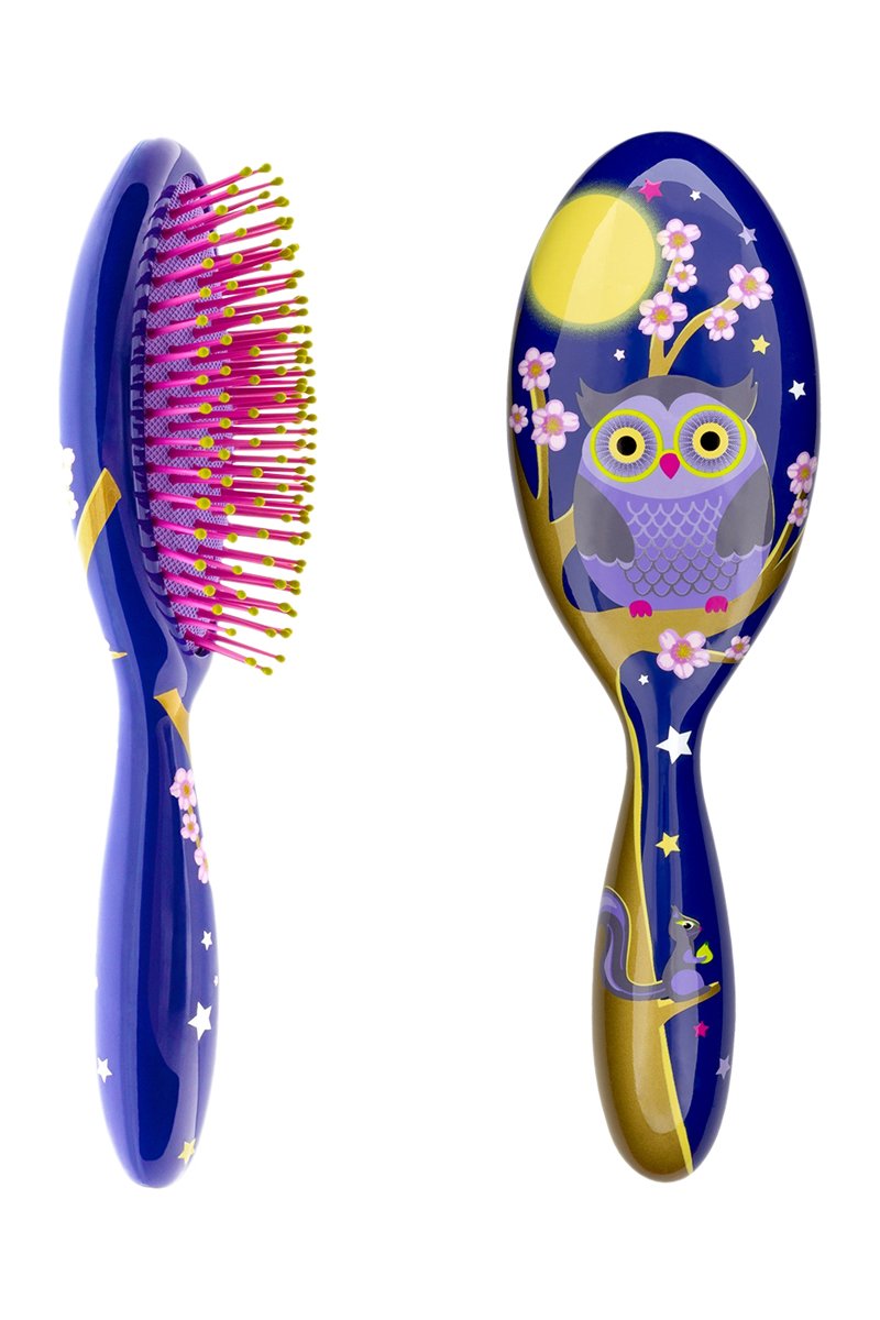 Haarborstel Ladypop Large Blue Owl-- Blauw en Roze