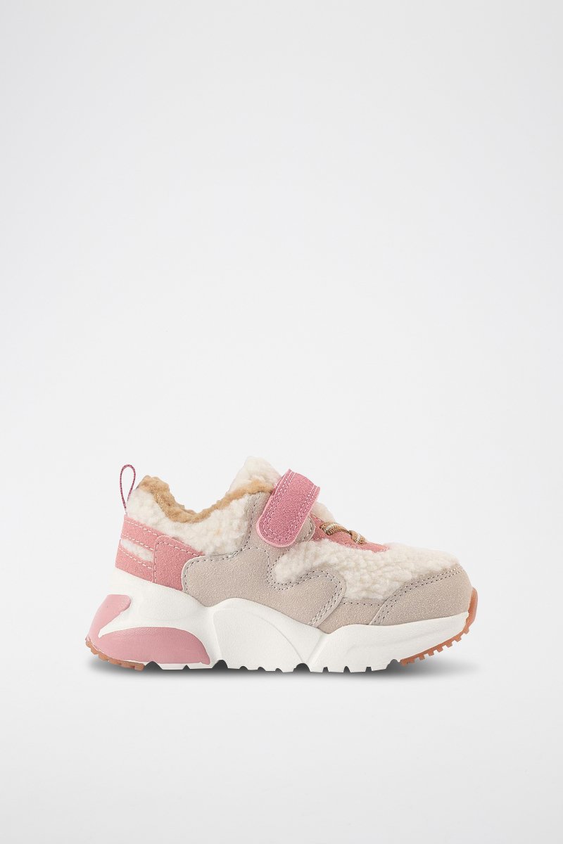 Details van kunstnubuck aan de voorkant, aan de zijkanten en aan de achterkant.