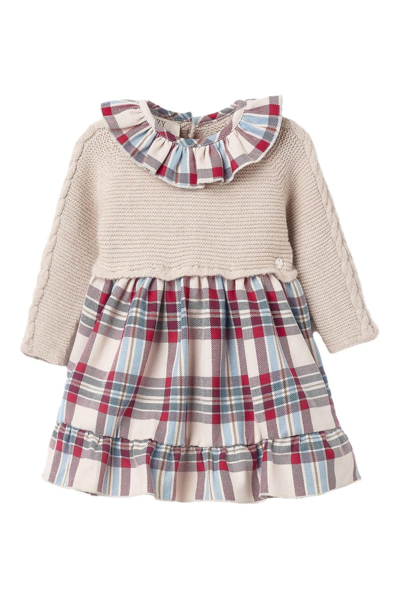 Ineengedraaid geweven bij de schouders en op de mouwen.