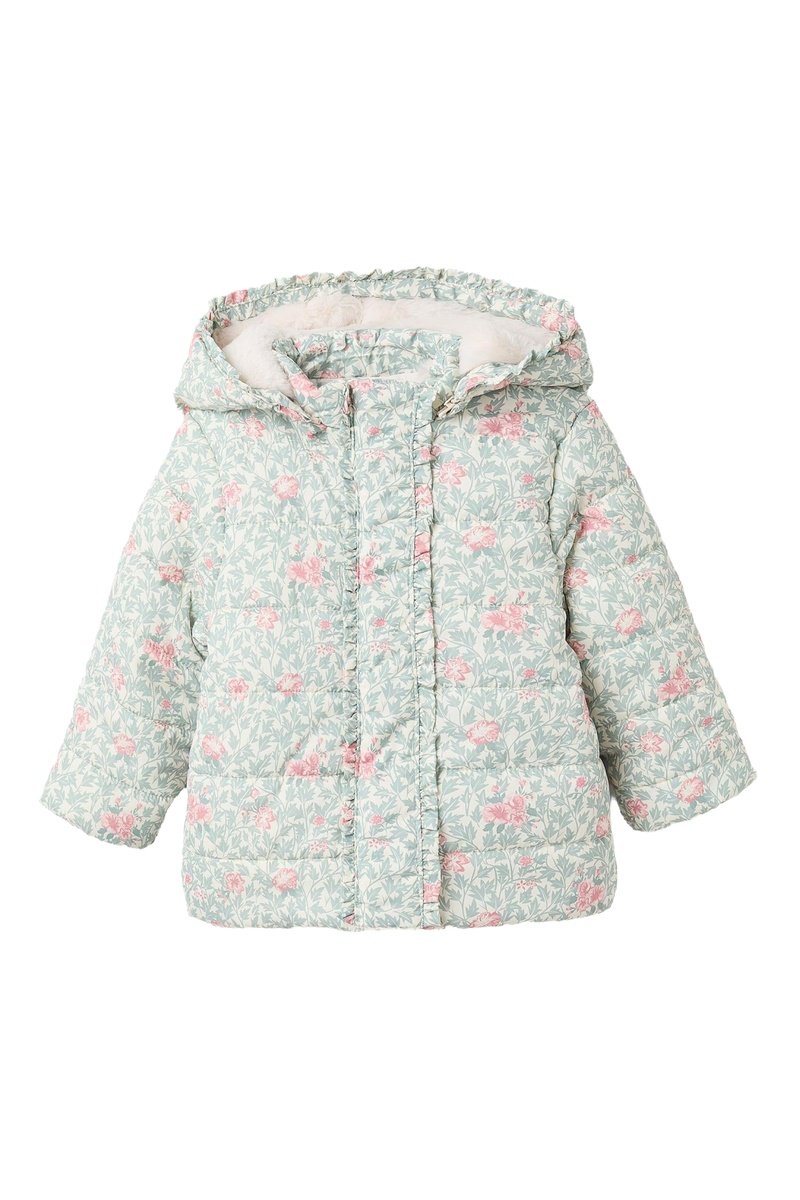 Gewatteerde jas met afneembare capuchon.