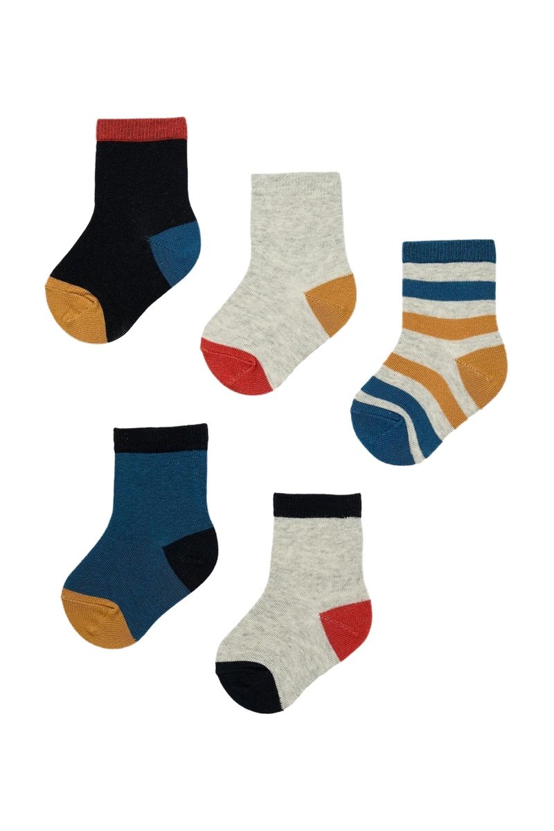 5 paar sokken waarvan 1 met streepmotief.