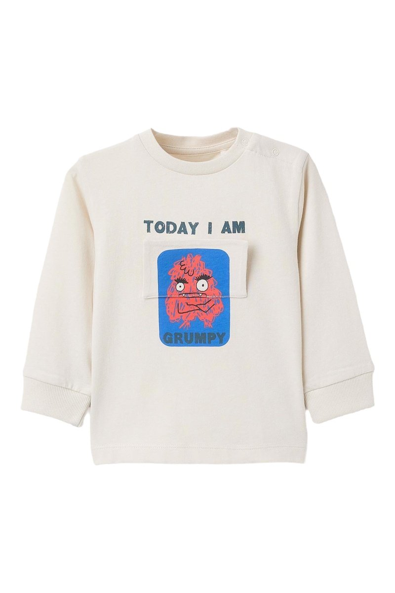Belettering en drukknopen met decoratief motief aan de voorkant.