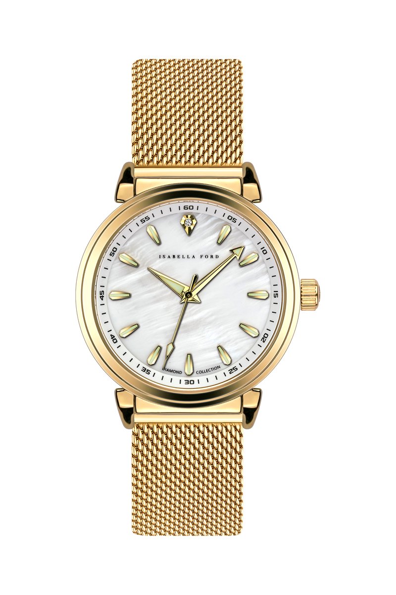 Stalen Quartz Horloge met diamant en parelmoer Barbara Goudkleurig en Wit