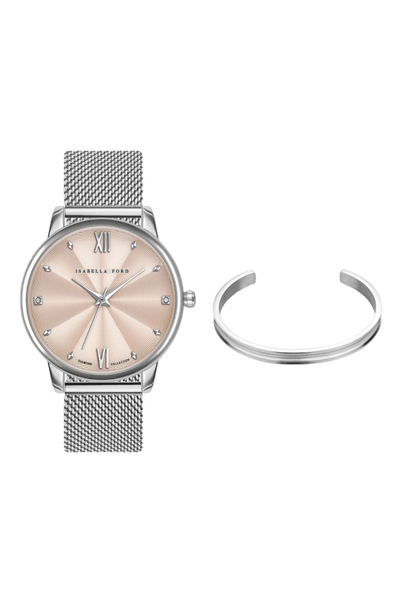 Set Stalen Quartz Horloge, diamanten en armband Skylar