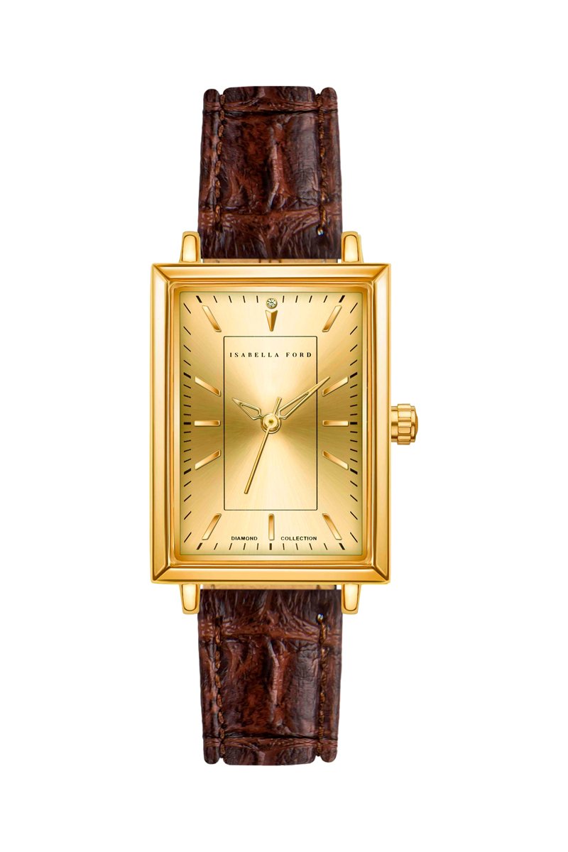 Leren Quartz Horloge met Diamant Elodie