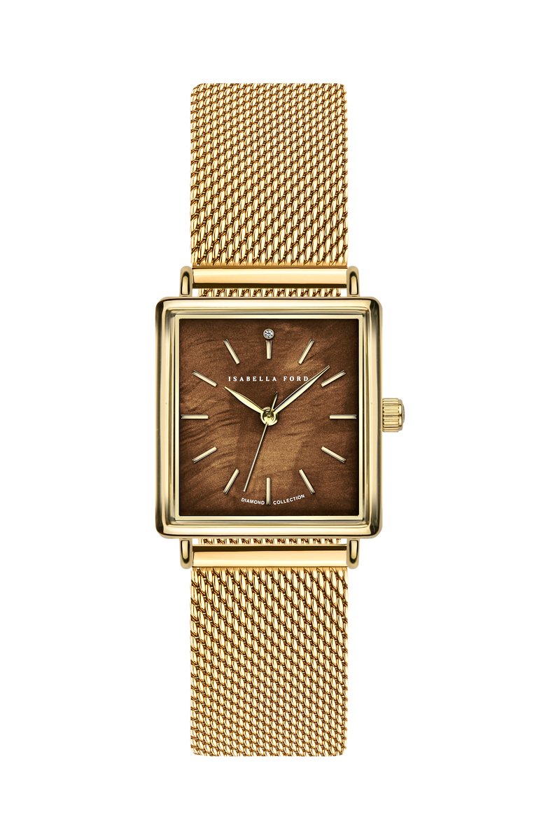 Wijzerplaat van parelmoer ingelegd met diamant.