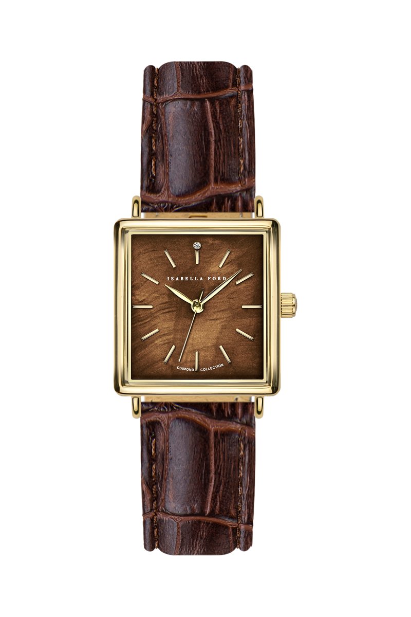 Leren Quartz horloge met parelmoer en diamant Marie Rose
