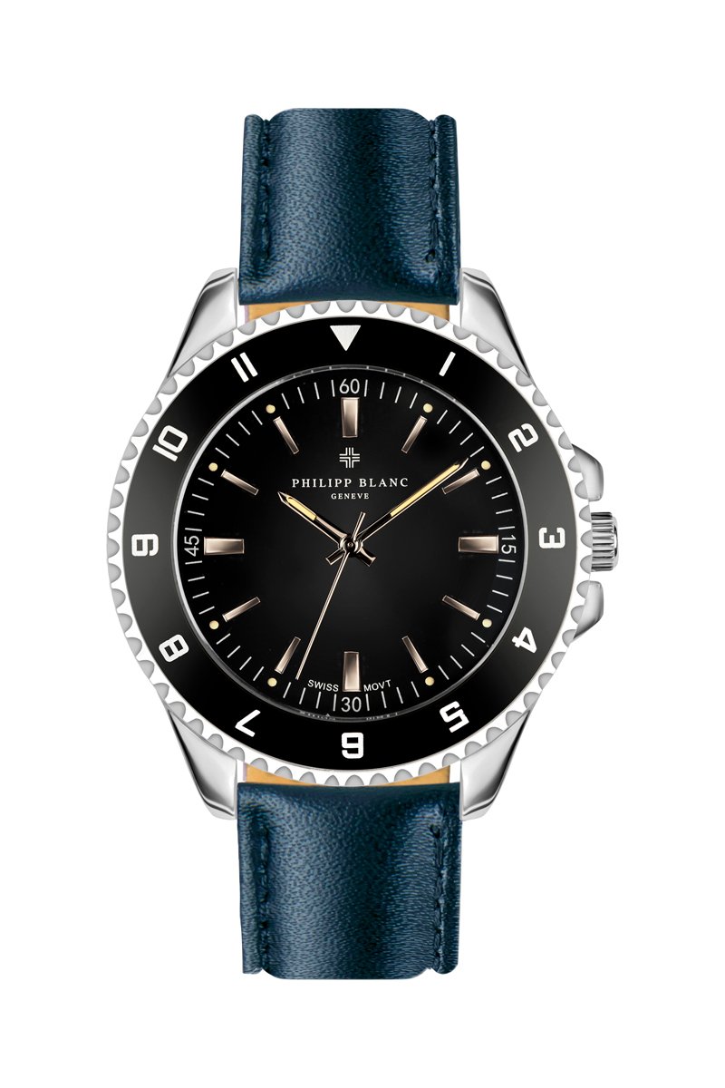 Leren Quartz Horloge - Donkerblauw en Zilverkleurig