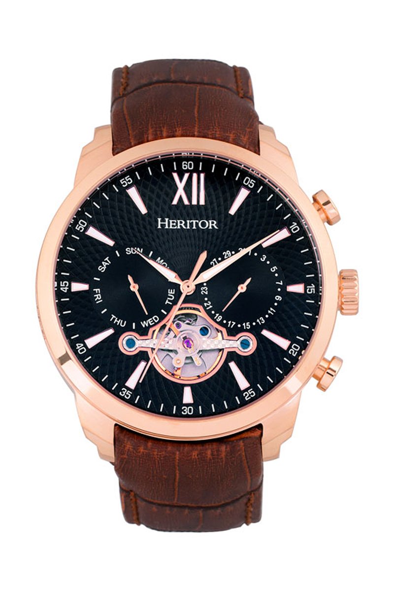 Leren Automatisch Horloge Arthur Heritor - Chronograaf - Bruin en Roségoudkleurig