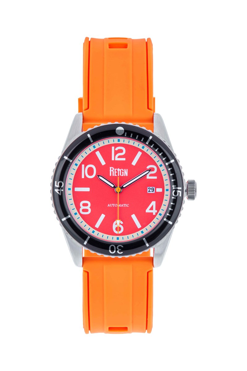 Automatisch Rubberen Horloge met Robijn - Oranje en Zilverkleurig