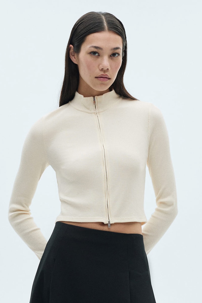 Vest met Opstaande Kraag en Ritssluiting - Ecru
