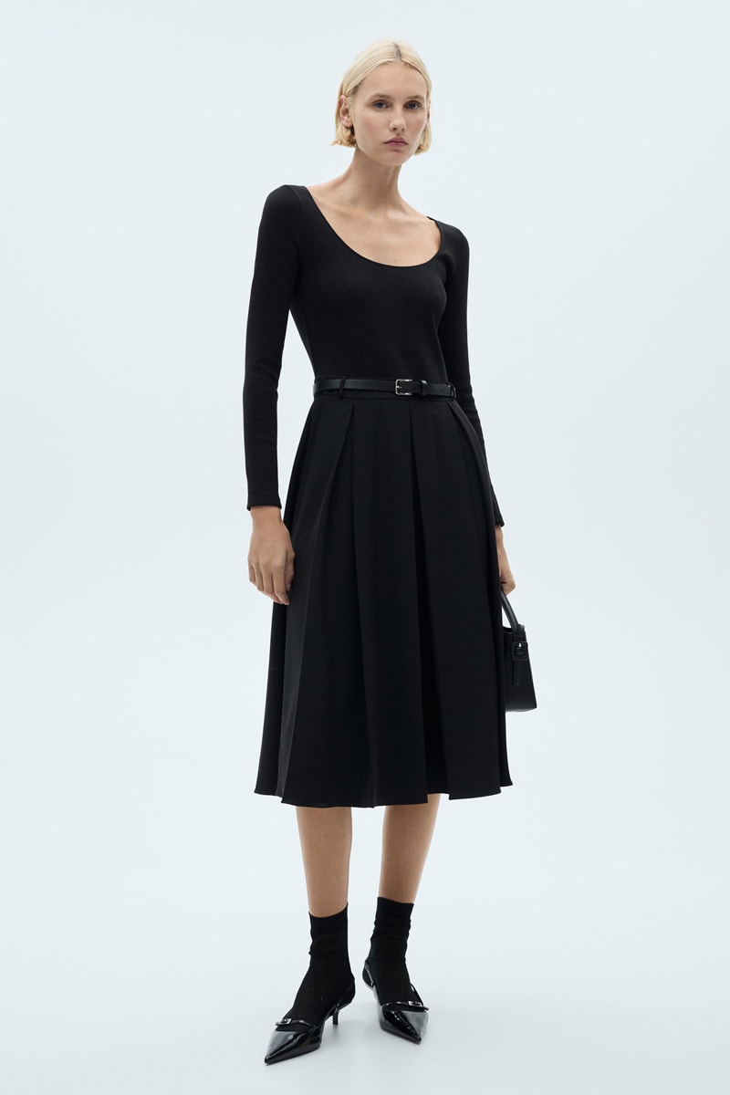 Plisséjurk met Riem - Zwart