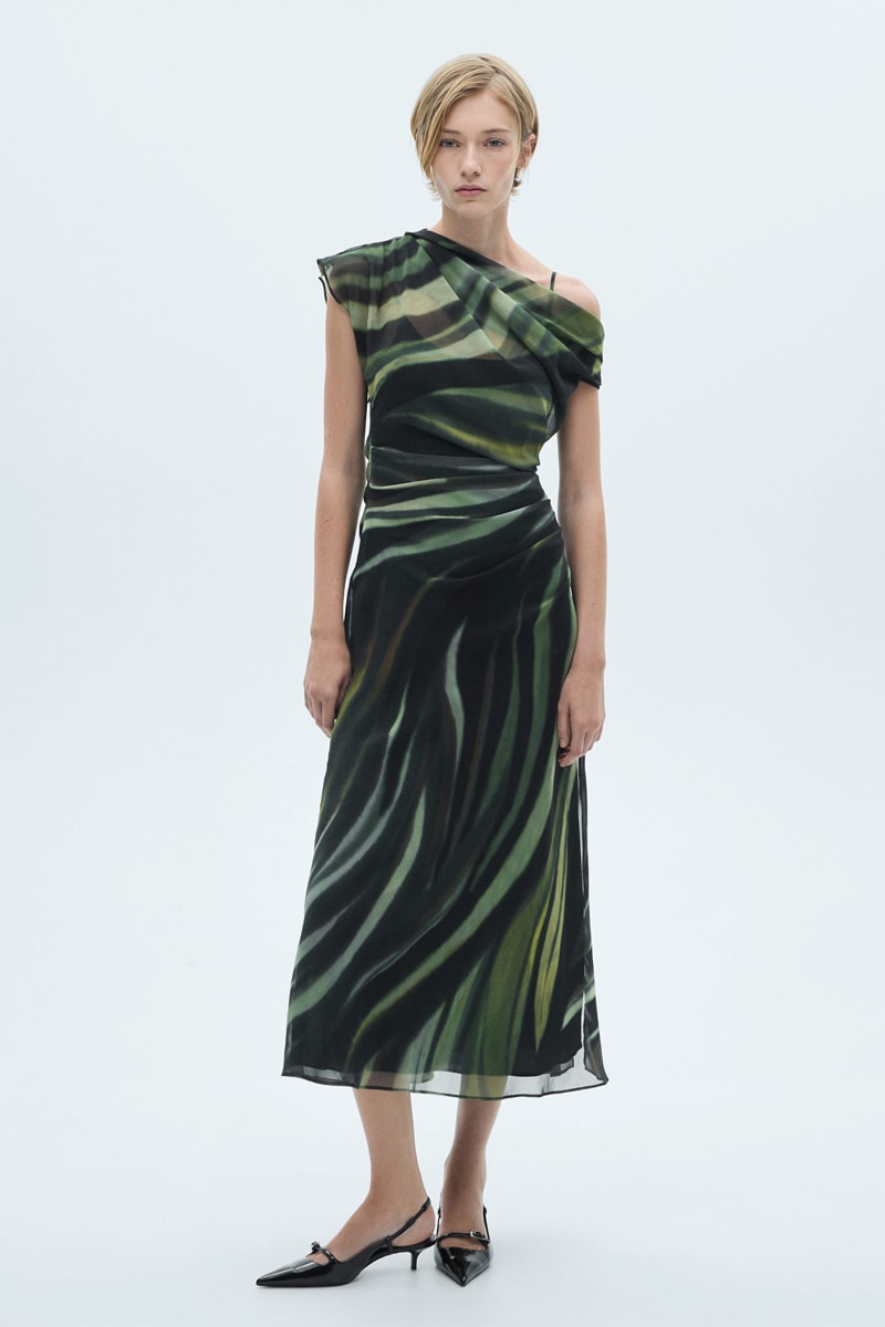 Jurk met Opdruk en Gedrapeerd Detail - Zwart
