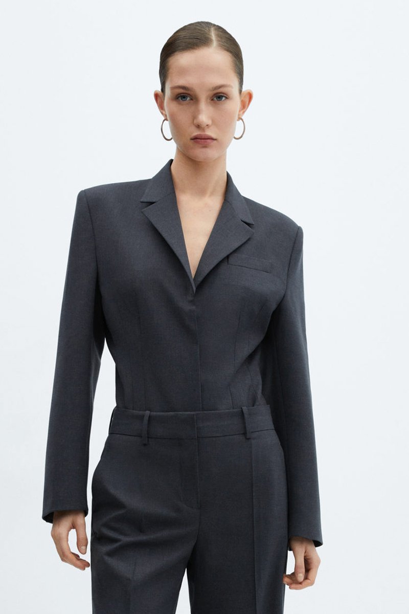 Wollen Bodysuit Blazer - Grijs