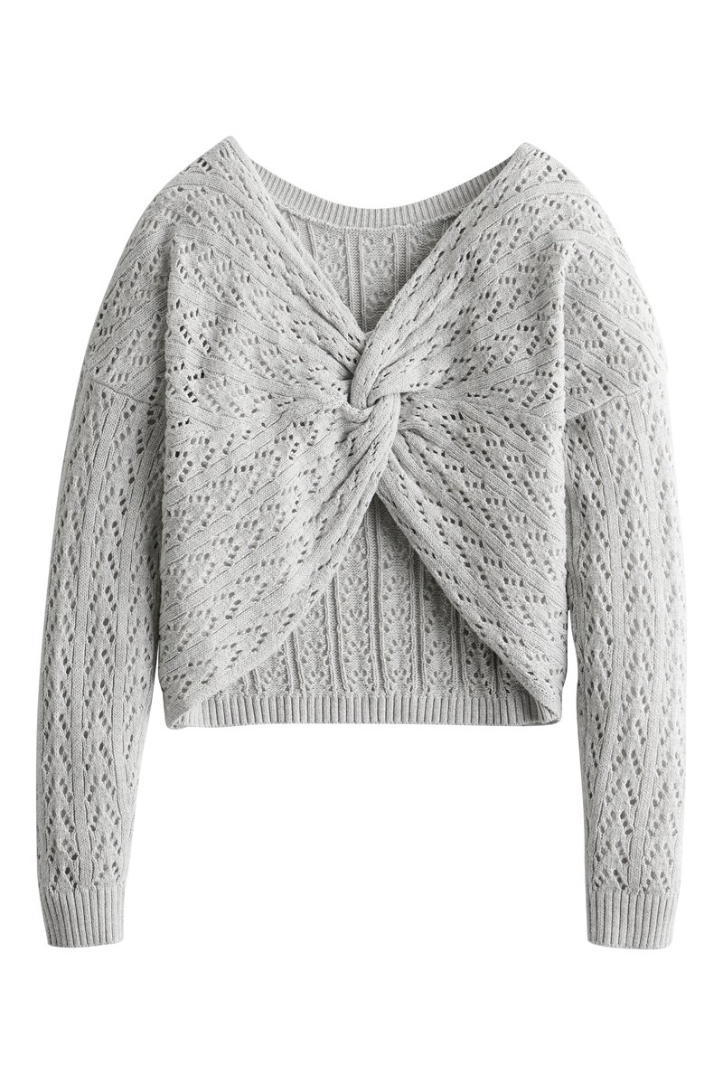 Opengewerkte en geweven top.