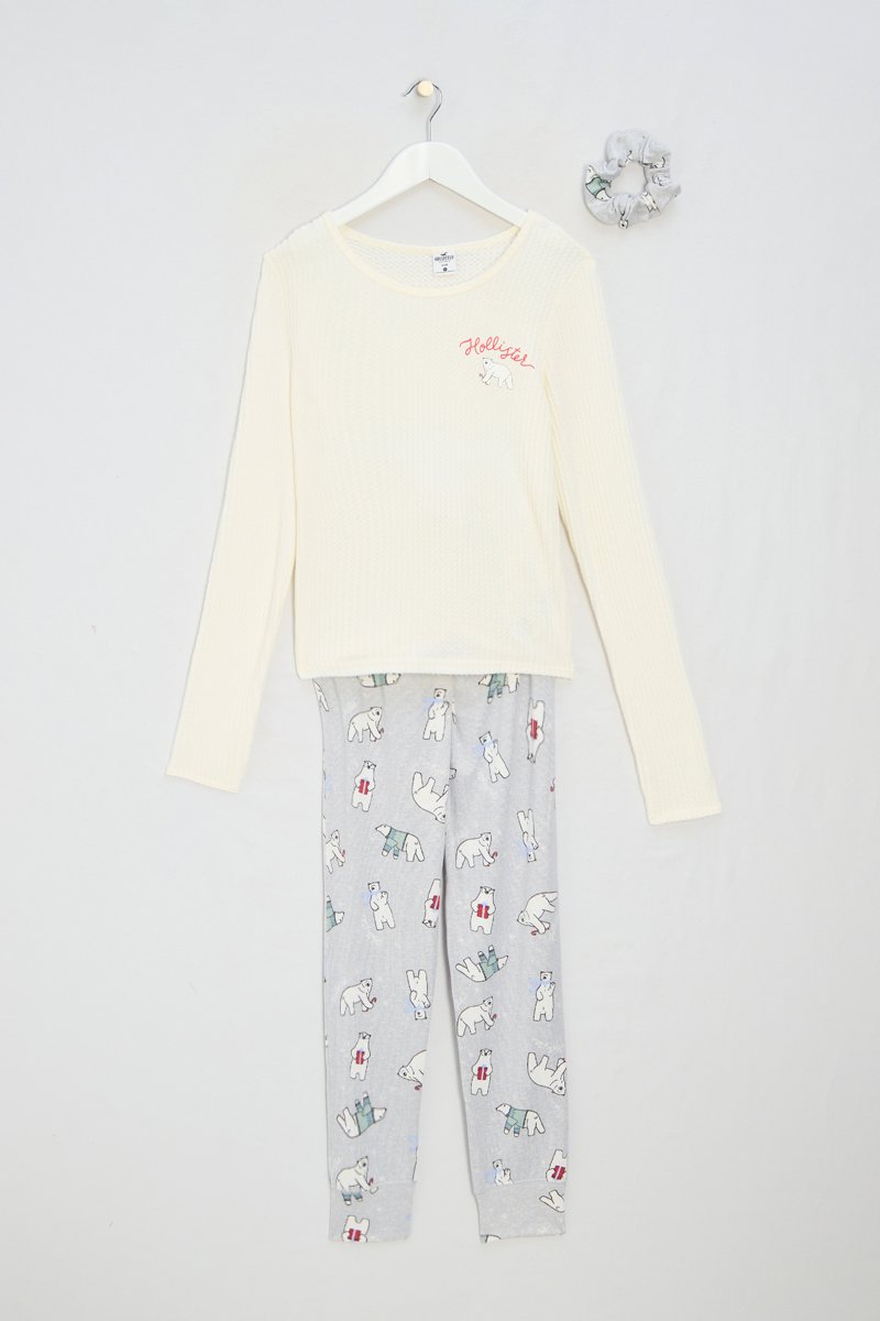 Pyjama en Scrunchie - Crèmekleurig en Lichtgrijs
