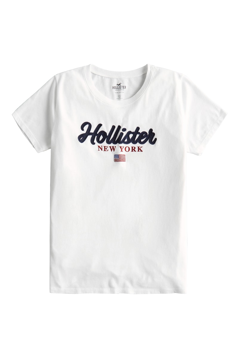 Belettering, Amerikaans vlagmotief en geborduurd logo aan de voorkant.