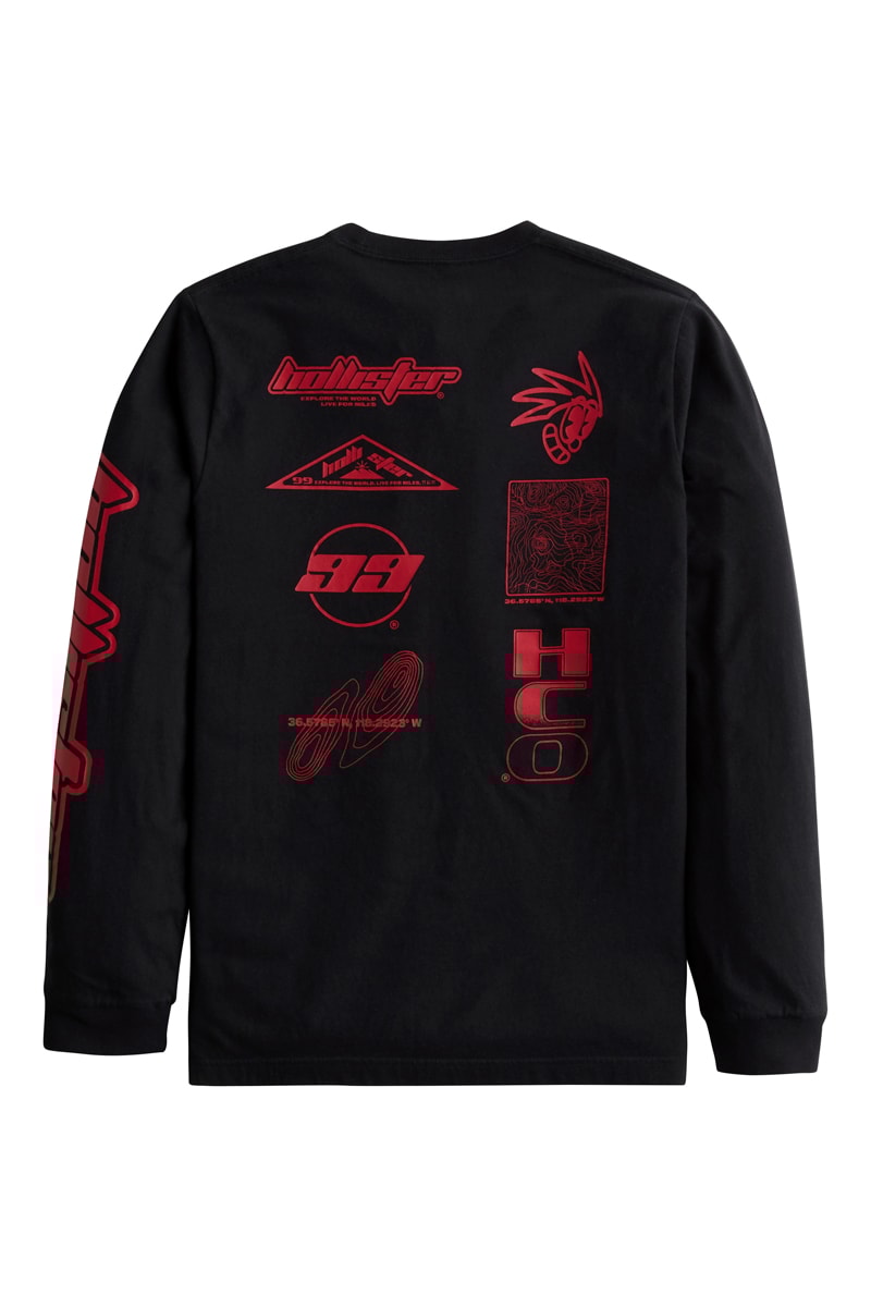 Logo op de linkermouw, aan de voorkant en aan de achterkant.