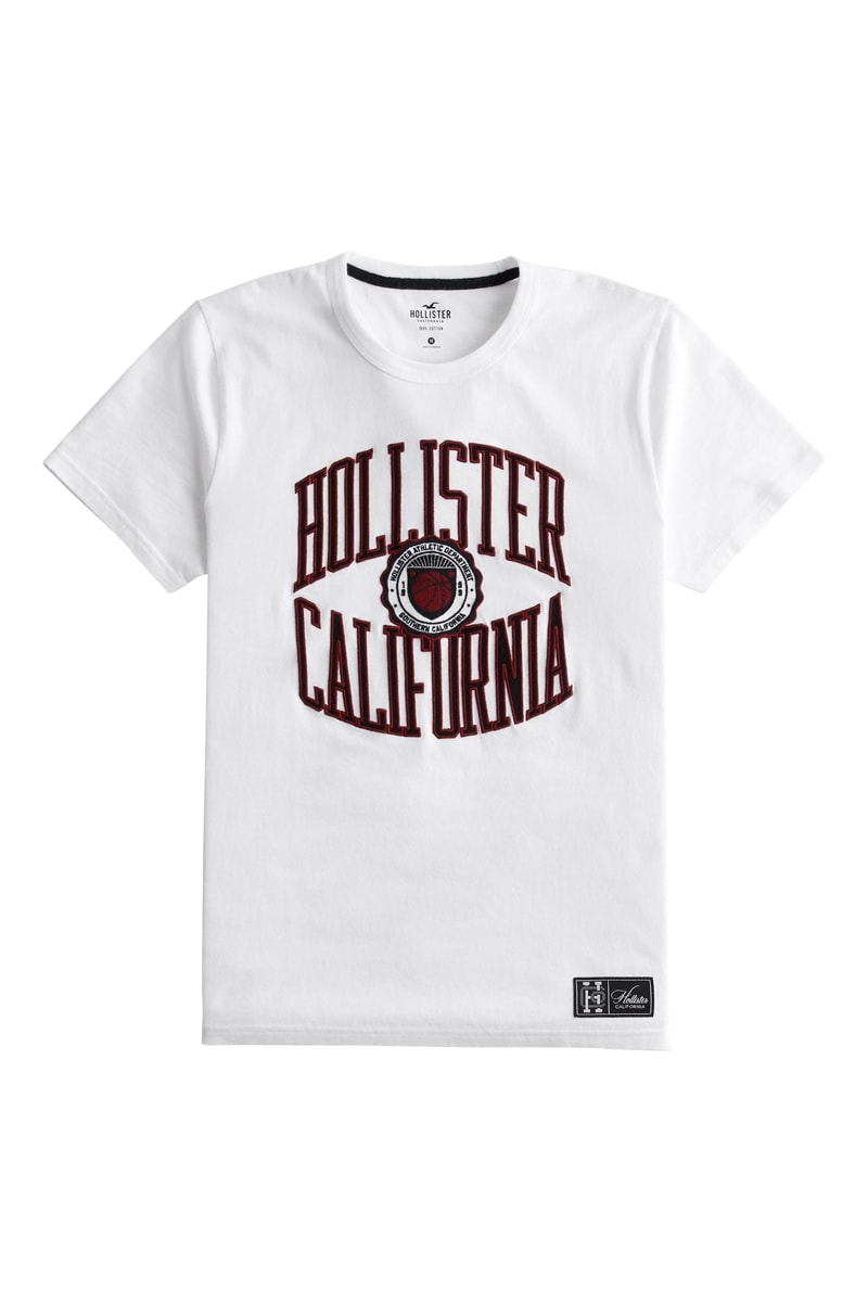 Cijfers, belettering, decoratief motief en geborduurd logo aan de voorkant.