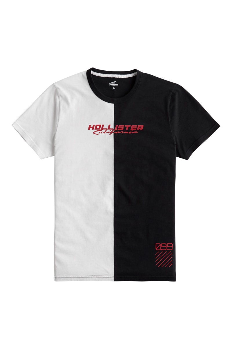 Cijfers, belettering, streepmotief en logo aan de voorkant.